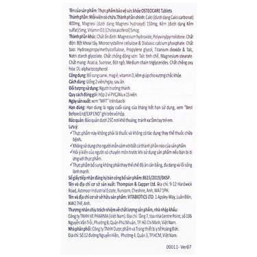 Osteocare là công thức chăm sóc xương được yêu thích ở Anh. Sản phẩm cung cấp nguồn calci tự nhiên, cân bằng tỉ lệ với magiê, vitamin D và kẽm, tất cả đều góp phần duy trì xương bình thường. Sản phẩm cần thiết cho cả cho nam giới và phụ nữ tuổi trưởng thành. Osteocare được nghiên cứu và phát triển bởi một trong những tập đoàn dược phẩm lớn mạnh nhất nhì tại nước Anh là Vitabiotics.