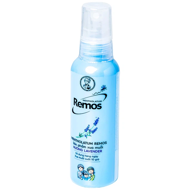 Các loại tinh dầu như oải hương, tràm trà, neem, sả, khuynh diệp và dầu bạc hà có tác dụng đuổi muỗi mạnh mẽ. Xịt muỗi Remos Lavender với dạng xịt tiện lợi, có tác dụng hiệu quả trong việc phòng tránh bệnh do muỗi gây ra. Sản phẩm có chứa Diethyltoluamide 15%, thành phần hữu hiệu nhất hiện có trong công thức của các chế phẩm chống muỗi sử dụng trên da. Mùi hương lavender thơm nhẹ nhàng tạo cảm giác thoải mái dễ chịu.