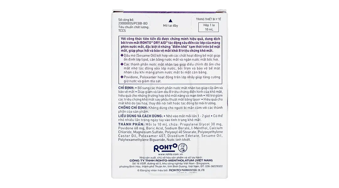 - Bổ sung các thành phần nước mắt nhân tạo giúp cấp ẩm và bảo vệ mắt.