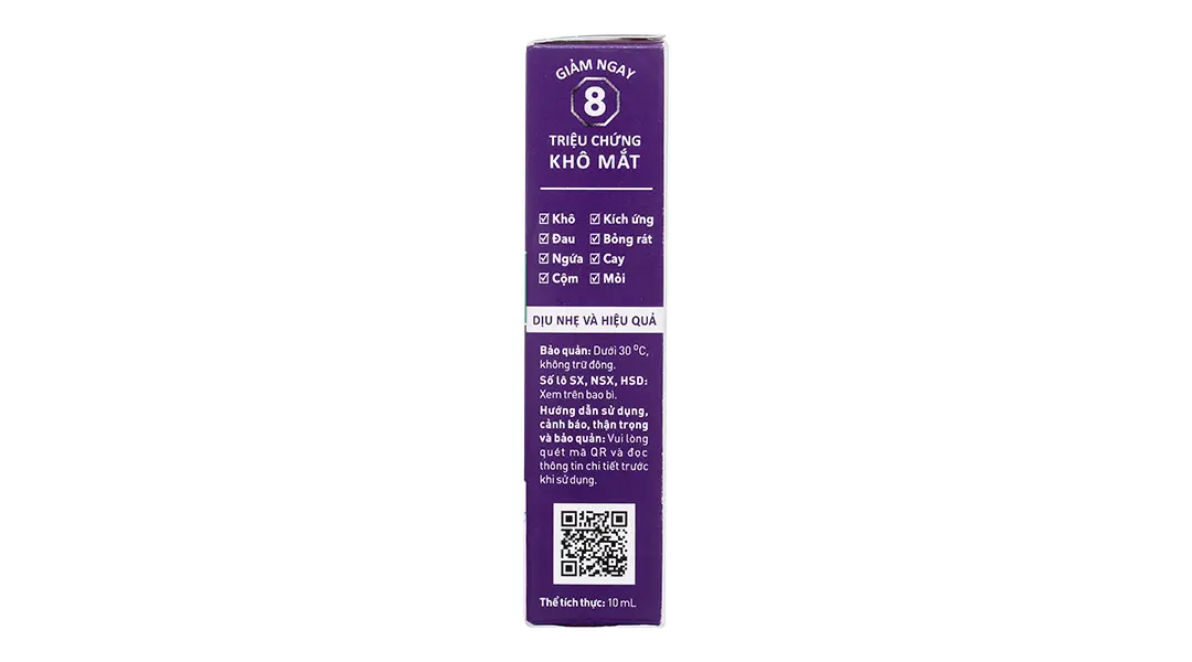- Giúp giảm và làm dịu 8 triệu chứng điển hình của khô mắt, hiệu quả cho những trường hợp khô mắt nặng và mạn tính.