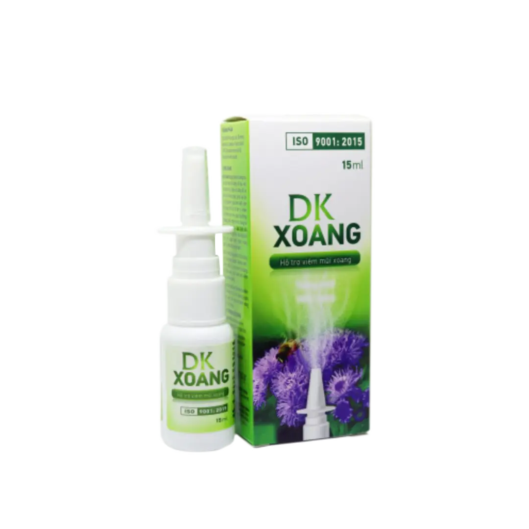 Xịt mũi thảo dược DK XOANG dạng xịt phun sương tạo các hạt mịn dễ dàng đi sâu vào khoang mũi, được sử dụng để vệ sinh mũi hàng ngày, giúp loại bỏ các dị nguyên, giúp làm sạch, làm ẩm, phục hồi lại độ ẩm tự nhiên của niêm mạc mũi, giúp mũi thông thoáng, giảm nghẹt mũi, mang lại cảm giác dễ chịu, đặc biệt khi niêm mạc mũi bị khô, khó chịu khi thời tiết hanh khô hoặc trong phòng điều hoà, máy lạnh.