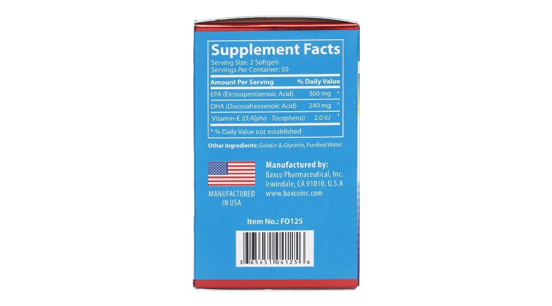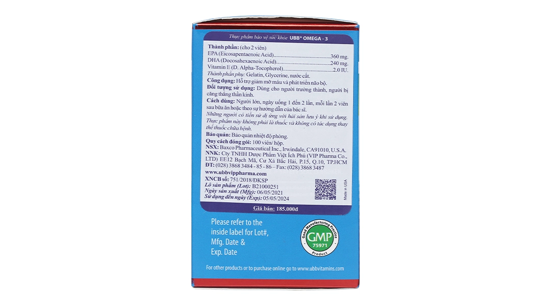 Cho 2 viên: EPA 360mg, DHA 240mg, Vitamin E 2.0IU.