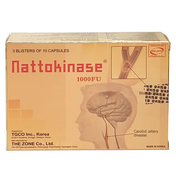 Nattokinase 1000FU là thực phẩm bảo vệ sức khỏe có công dụng hỗ trợ điều trị và phòng ngừa tai biến mạch máu não (đột quỵ) và các di chứng của nó. Hỗ trợ Các bệnh lý liên quan đến cục máu đông: viêm tắc động, tĩnh mạch, các biến chứng của bệnh tiểu đường, bệnh mạch vành, đau thắt ngực, nhồi máu cơ tim, suy giảm trí nhớ ở người già. Giúp cải thiện hoạt tính Fibrinolytic. Giúp phòng ngừa và hỗ trợ điều trị bệnh nghẽn mạch máu.