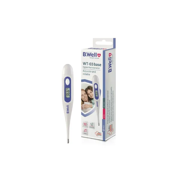 Nhiệt kế điện tử B.Well Swiss WT-03 base nhập khẩu chính hãng Thụy Sĩ, thiết kế nhỏ gọn, đo nhanh, chính xác, an toàn, phù hợp cho trẻ em và người lớn, và có thể dễ dàng mang theo.