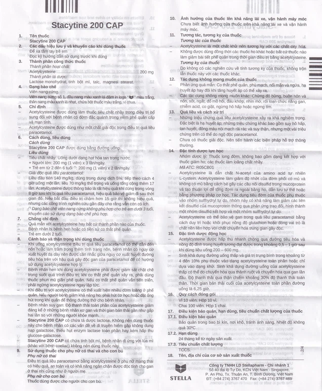 Stacytine 200 CAP có chứa tá dược lactose. Không nên dùng thuốc này cho bệnh nhân có các vấn đề về di truyền hiếm gặp không dung nạp galactose, thiếu hụt enzym lactase toàn phần hay kém hấp thu glucose-galactose.