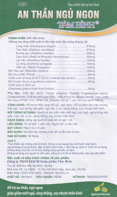 - An Thần Ngủ Ngon Tâm Bình hỗ trợ an thần, giúp dễ ngủ, ngủ ngon.