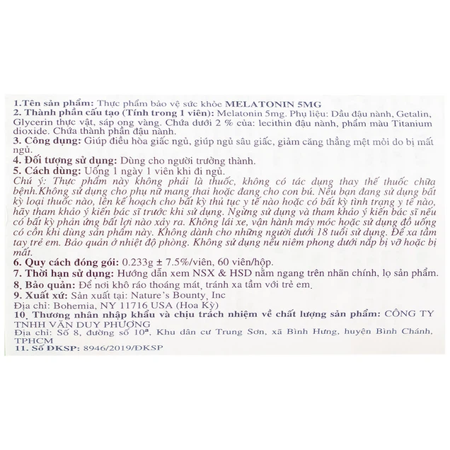 Nature’s Bounty Melatonin dùng cho người trưởng thành bị mất ngủ, suy nhược, căng thẳng thần kinh.