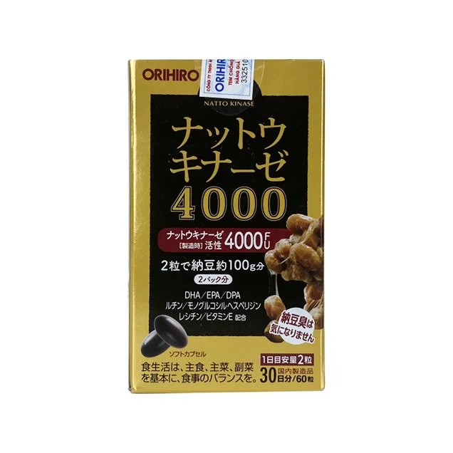 Orihiro Nattokinase 4000FU 60 viên chiết xuất từ 1 món ăn truyền thống của người Nhật có tác dụng hoạt huyết, chống cục máu đông, phòng ngừa đột quỵ, tai biến.