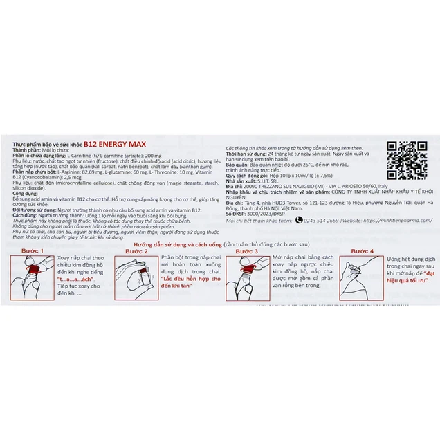 Dung dịch uống B12 Energy Max là thực phẩm chức năng chuyên bổ sung các khoáng chất tốt cho cơ thể. Sản phẩm chứa một nguồn hoạt chất dồi dào như acid amin, vitamin B12 giúp hỗ trợ nâng cao sức đề kháng, tăng cường sức khỏe.