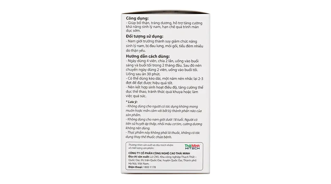 Bên cạnh những thay đổi về dinh dưỡng và lối sống sinh hoạt, các quý ông có thể tin dùng các loại thực phẩm chức năng giúp cải thiện sinh lý nam giới hiệu quả. Viên uống KingsUp với nguồn gốc hoàn toàn từ thiên nhiên có thể được xem như trợ thủ đắc lực của phái mạnh trong hành trình lấy lại phong độ của mình. Sản phẩm được sản xuất trong dây chuyền nhà máy đạt tiêu chuẩn GMP và là niềm tự hào của Thái Minh Hi-tech.