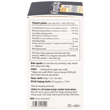 KingsUp giúp bổ thận, tráng dương. Hỗ trợ tăng cường khả năng sinh lý nam, hạn chế quá trình mãn dục sớm.