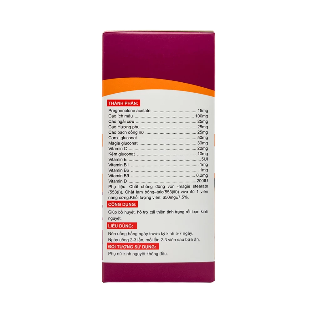 - Nên uống hằng ngày trước kỳ kinh 5-7 ngày.