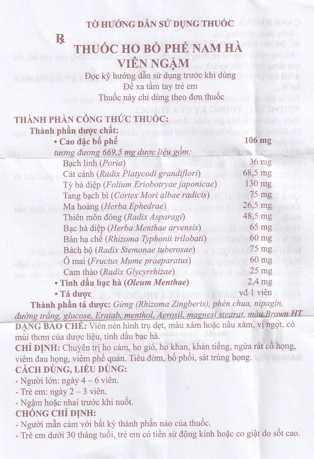 Thuốc Ho Bổ Phế Nam Hà Ngậm được chỉ định dùng trong các trường hợp sau: