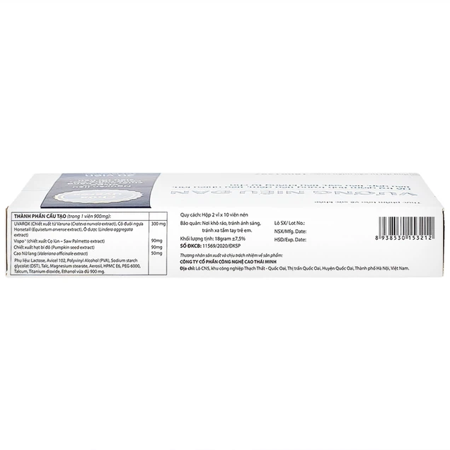 UVAROX: Chiết xuất từ 3 thành phần gồm Varuna, cao Cỏ đuôi ngựa và cao Ô dược. Hoạt chất này giúp tăng ngưỡng chứa nước tiểu của bàng quang trước khi bàng quang kích thích. Đồng thời tăng lưu lượng tuần hoàn máu đến nuôi dưỡng vùng cơ sàn chậu, tăng trương lực cơ sàn chậu nên giúp kiểm soát tốt việc tiểu tiện. UVAROX được cấp bằng sáng chế tại Mỹ và đặc biệt là đã nghiên cứu lâm sàng, cho hiệu quả tích cực trên bệnh nhân tiểu đêm.