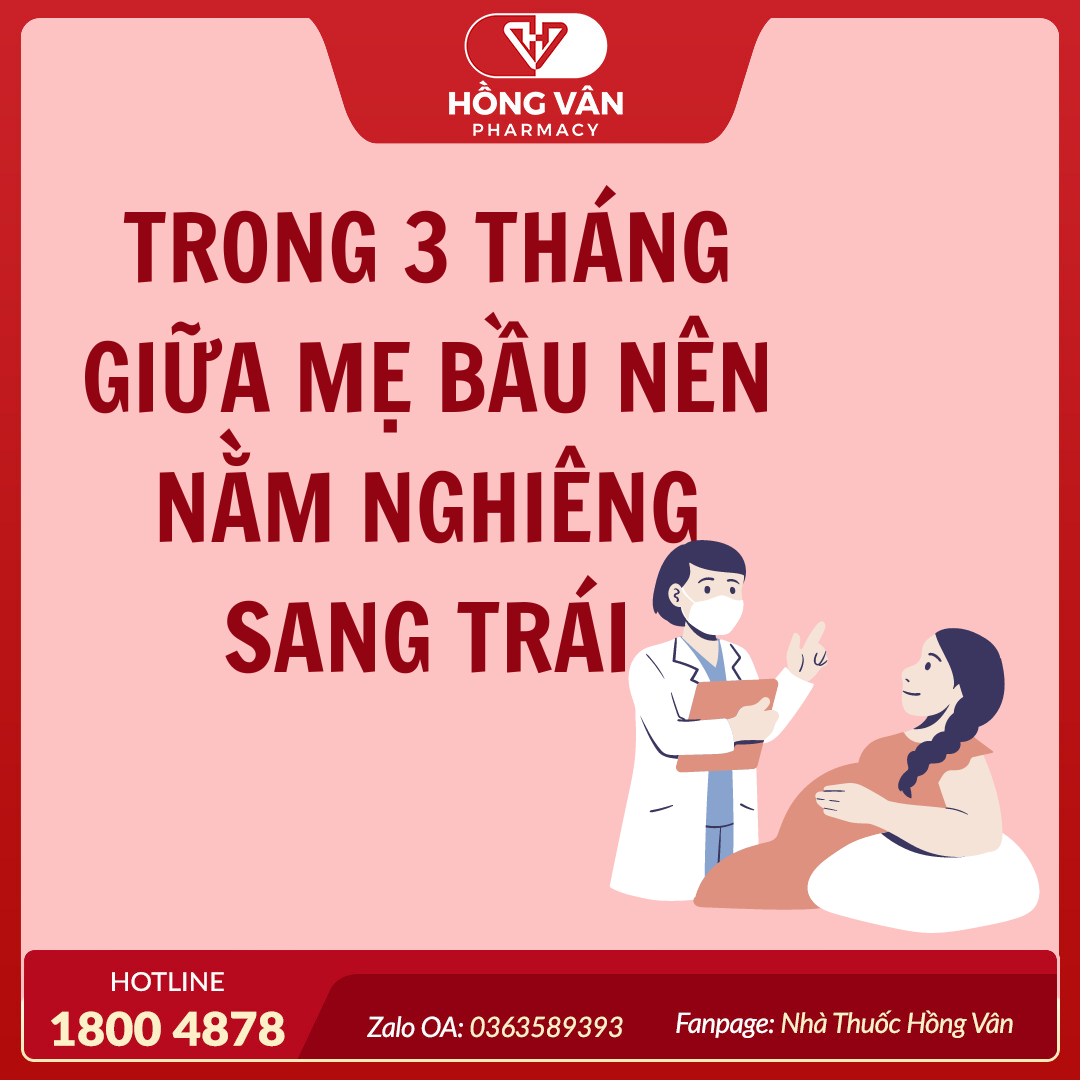 Tư thế ngủ tốt cho mẹ bầu trong ba tháng giữa được khuyến cáo là nằm nghiêng bên trái. Vì ở những thời gian này, bụng mẹ bầu ngày càng to lên và xuất hiện các triệu chứng như ốm nghén, trào ngược dạ dày thực quản,... Do đó việc ngủ ở tư thế nằm nghiêng sang trái sẽ phần nào giúp giảm áp lực lên thai nhi. Bên cạnh đó, mẹ bầu cũng có thể chặn gối mềm dưới bụng và sau lưng khi ngủ.