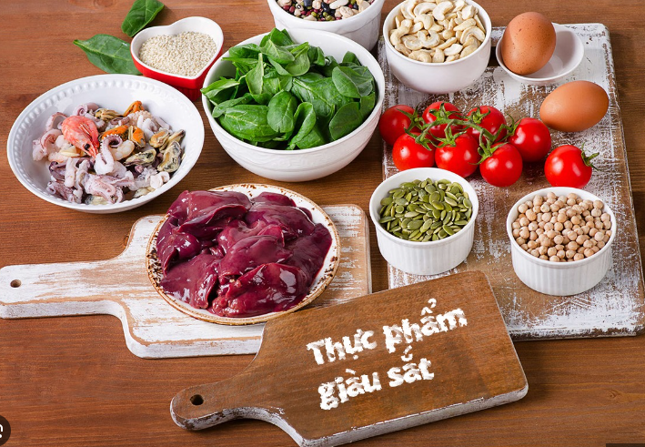 Sắt có nhiều trong thịt đỏ, hải sản, rau xanh, các loại hạt và đậu