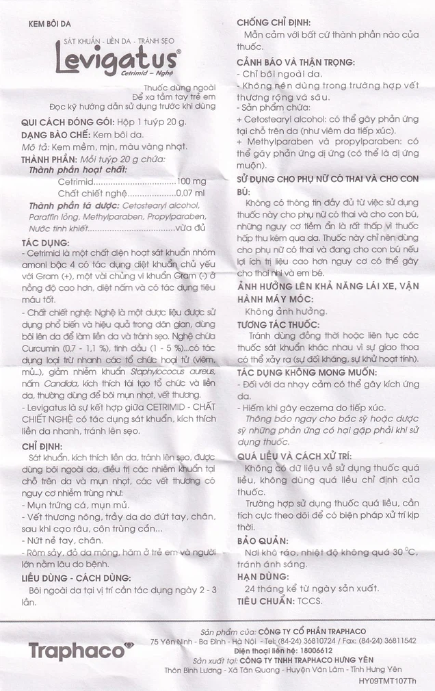 Levigatus là sự kết hợp giữa CETRIMID - CHẤT CHIẾT NGHỆ có tác dụng sát khuẩn, kích thích liền da nhanh, tránh lên sẹo.