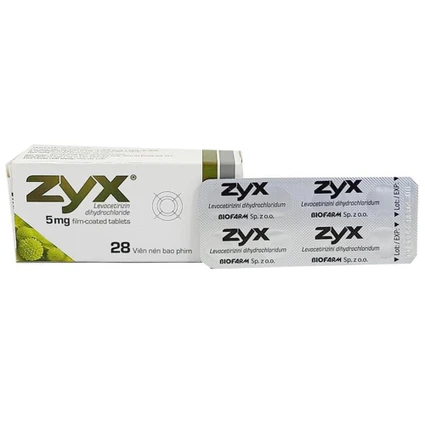 Thuốc Zyx chỉ định dùng điều trị triệu chứng viêm mũi dị ứng dai dẳng, mãn tính, viêm mũi dị ứng theo mùa, hắt hơi, chảy nước mũi, viêm kết mạc dị ứng, mày đay mạn tính vô căn ở người lớn và trẻ em trên 6 tuổi trở lên.