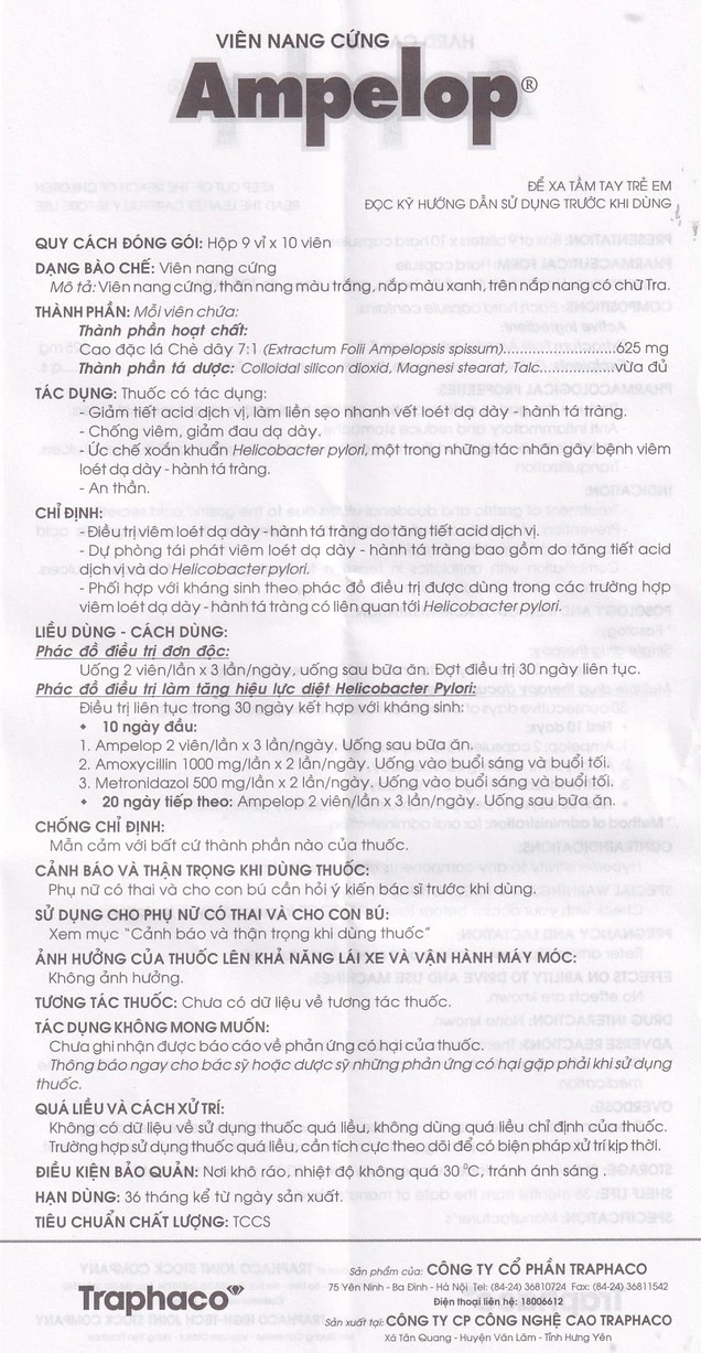 Ampelop 2 viên/lần x 3 lần/ngày. Uống sau bữa ăn.