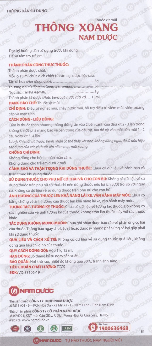 Thuốc xịt mũi Thông Xoang Nam Dược được chỉ định dùng trong các trường hợp sau: