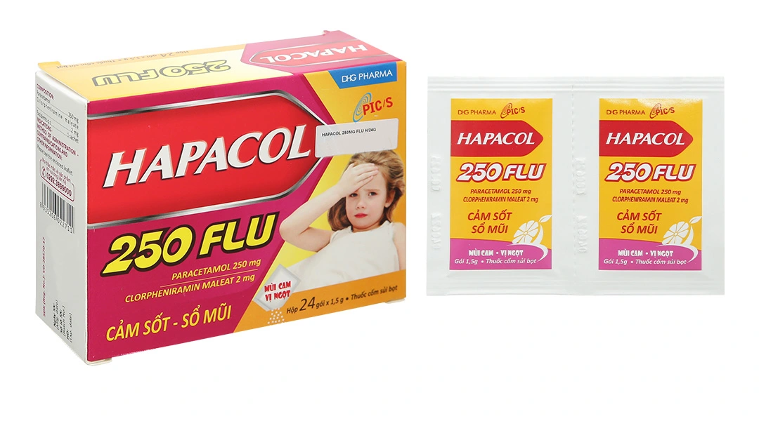 Sự phối hợp của Paracetamol và clorpheniramin trong Hapacol 250 Flu làm giảm nhanh các triệu chứng sốt, sổ mũi, nhức đầu. Đây là những triệu chứng thường xuất hiện khi bị cảm hoặc viêm mũi, viêm xoang.