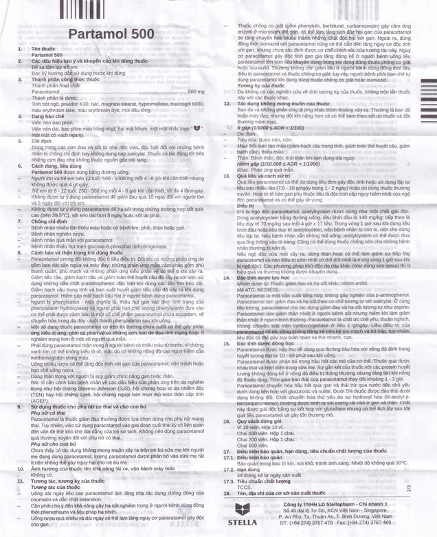 Thuốc Partamol 500 dạng viên nén dùng đường uống.
