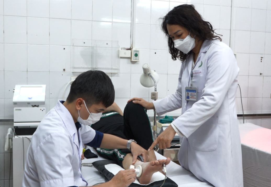 Người bệnh tiến hành phục hồi chức năng tại Bệnh viện Hữu nghị Việt Đức.