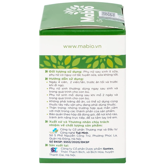 Viên uống Mabio Tuệ Linh với các thành phần thiên nhiên, giúp thông tuyến sữa, tăng số lượng và nâng cao chất lượng sữa mẹ, giúp sản phụ lấy lại sức khỏe sau sinh.