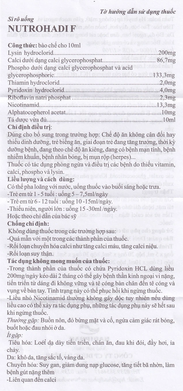 Thuốc Nutrohadi F được chỉ định dùng trong các trường hợp sau: